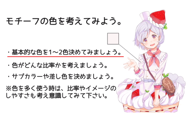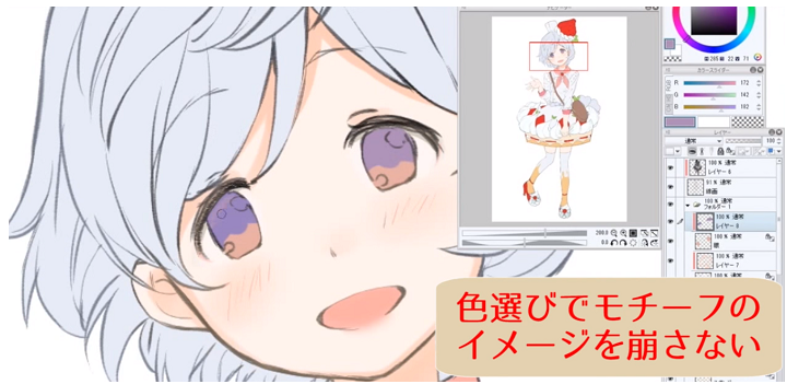 颜色大概决定了之后就只会涂上了。虽然在之前的解说中也提到过,但还是要重视的是,选择颜色不会破坏主题的印象。