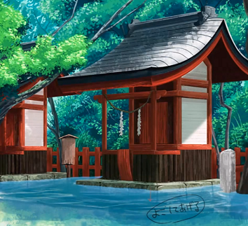 在这次的插图中,在水和建筑物相接的部分放上高光,随着走到跟前,水的深度用暗影来表现。
