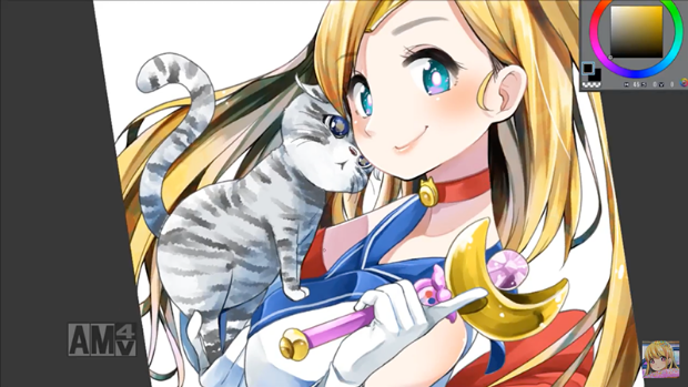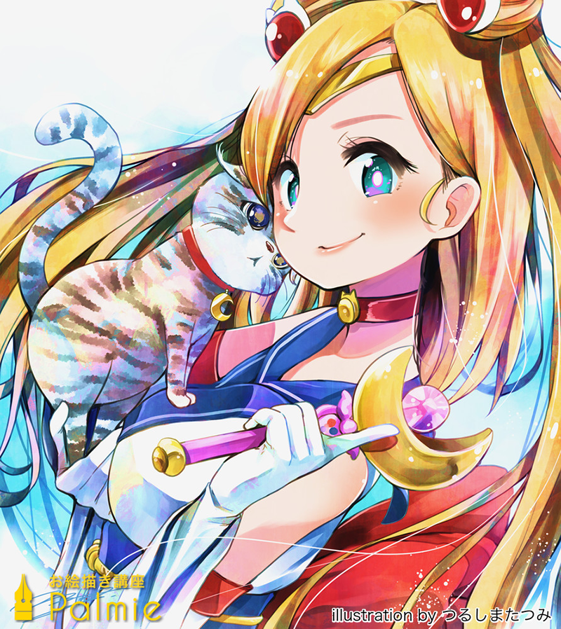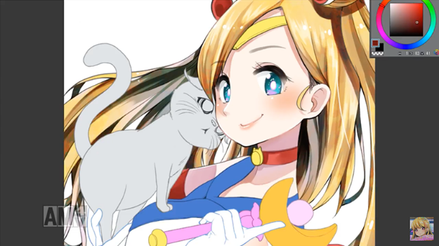 最终颜色的调整和背景补上,美少女战士水兵月的插图完成了!完成得非常棒啊~。