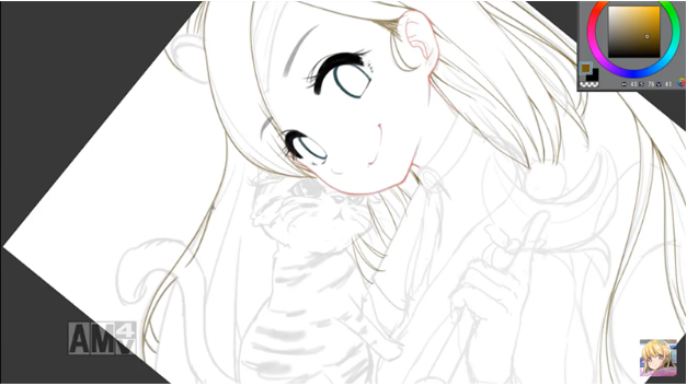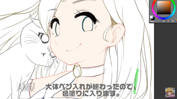 线条画完成后转移到涂上。从角色的脸开始涂。