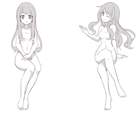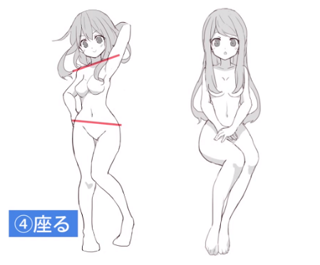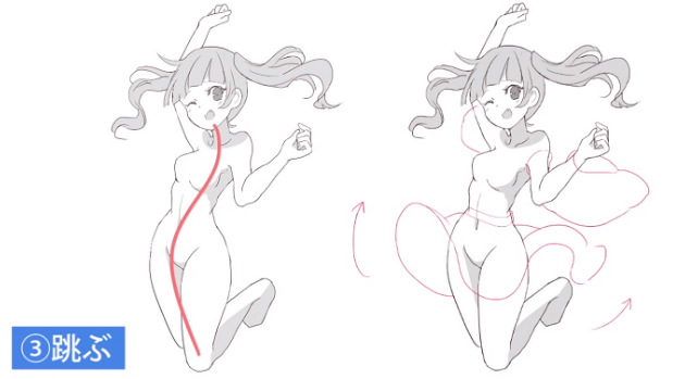 在注意S形曲线的同时,让头发和衣服蓬松,可以通过绘制身体来赋予更动感的感觉。
