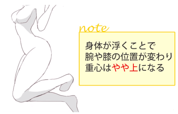 人跳跃时,脚离地,身体漂浮,由于手臂位置的变化和膝盖的弯曲,使重心略微上移。