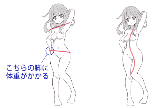 在站立姿势的情况下,通过写重心线,可以看出哪条腿的重量较重,画画时更容易平衡。