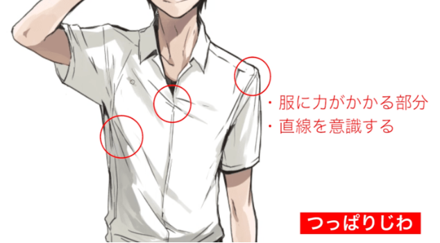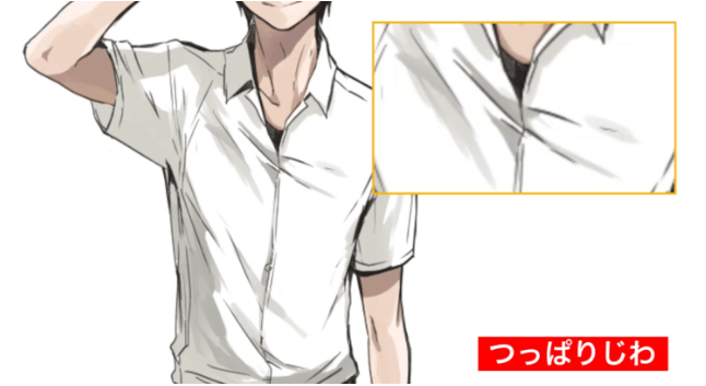 首先,“紧紧性”是在衣服用力的部分形成的皱纹,有意识地涂上直线。