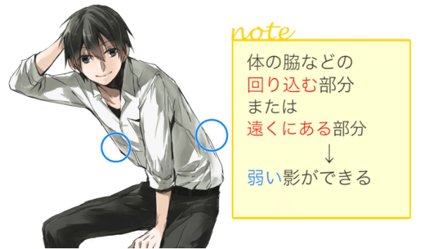 最深色的阴影颜色,通过放在衣服稍微进去的地方来表现反射光,就能发出身体的量感。