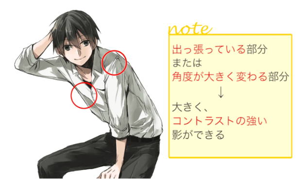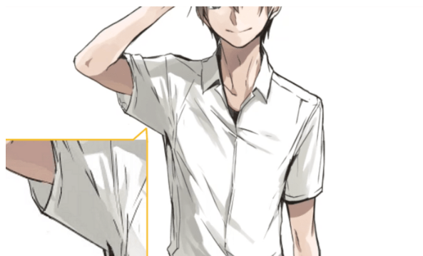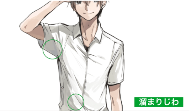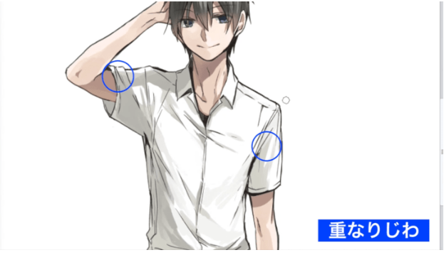 “重叠jiwa”是衣服的布料重叠形成的皱纹,只用线条画或者涂阴影就能表现出来,所以不需要特别的涂抹。