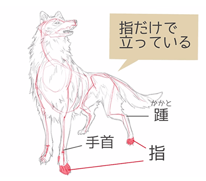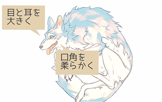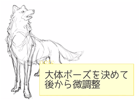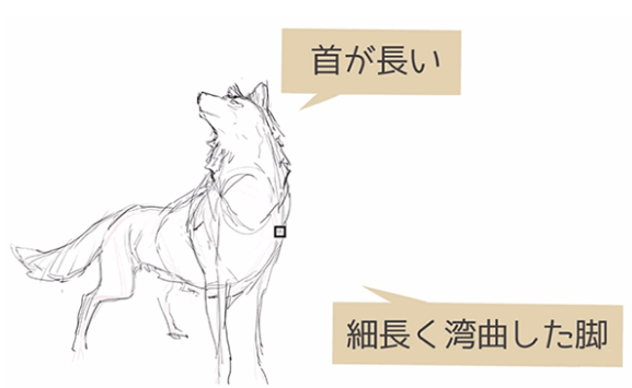 调查狼资料时的第一印象是,脖子长和手脚细弯曲很性感,所以以这两点为重点来描绘一下吧。