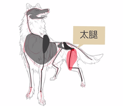 狼等四足动物也有与人类所说的上臂、下臂、肋骨、髋关节、大腿等相当的部分。