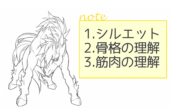 在对骨骼和肌肉进行生物理解之前,最好在线条上反映出什么样的特征和印象。根据生物的不同,有圆润的、硬邦邦的等各种各样的特征。
