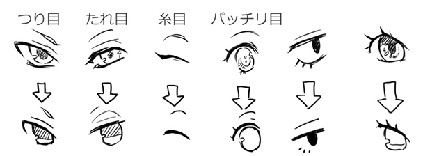 - 眼睛……在头部的十字线的横线下方的位置画得很大