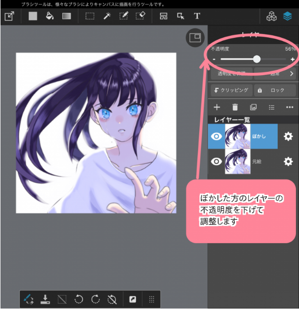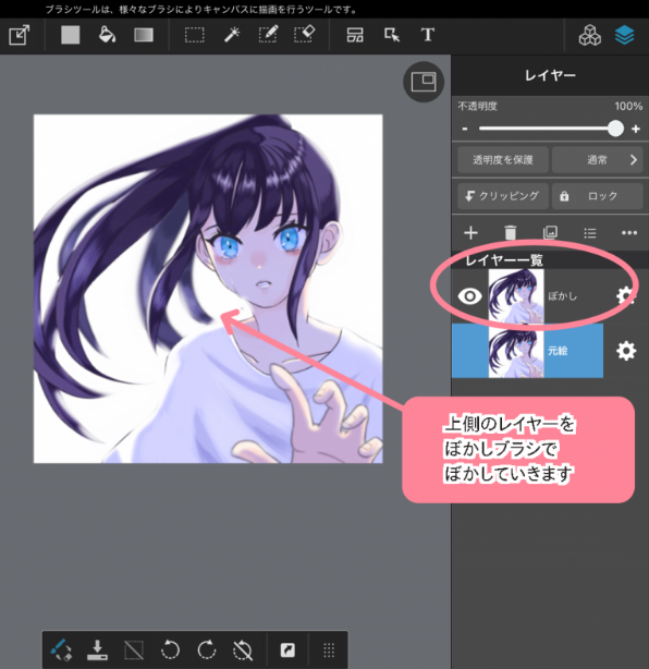 因为不能只用橡皮擦或透明色的刷子擦掉模糊,所以“模糊范围太广了”“弄错了模糊的地方”的时候,请再次尝试撤消。