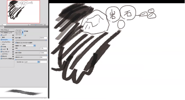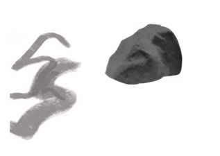 同时,为了表现岩石破裂的部分,使用“硬圆”这一刷子细致地画出岩石的表面比较好。