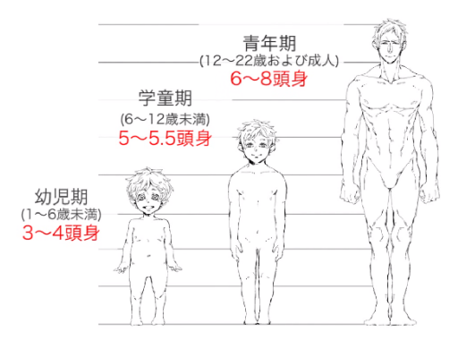 作为大概的标准,头身可以分为3个年代。