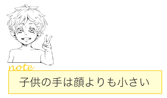 另一方面,在幼儿期,手还很小,脸更大。