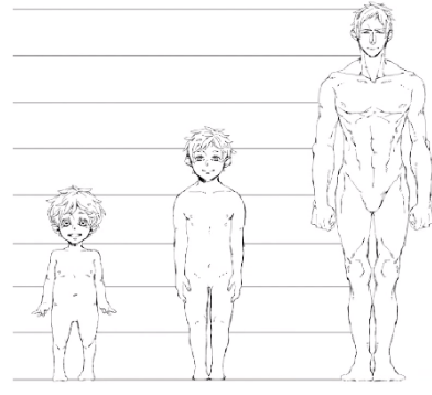 从初中生到高中生男孩,大概是用6只到7只的身体来画的。