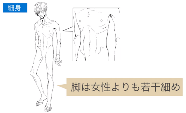 首先,分四个体型来解说身体的描绘方法。首先是标准的体型。