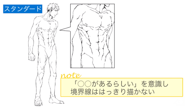 像这样,在标准的类型中,要意识到“好像有00”,对于肌肉和骨骼,不要画出清晰的边界线。
