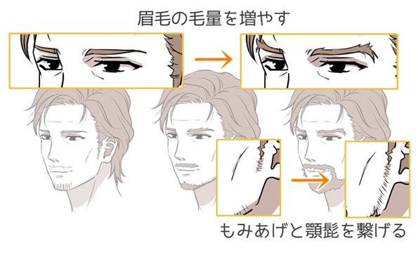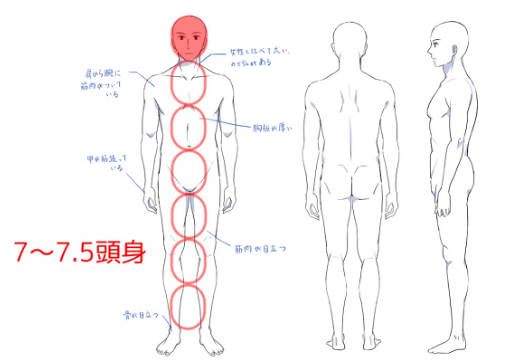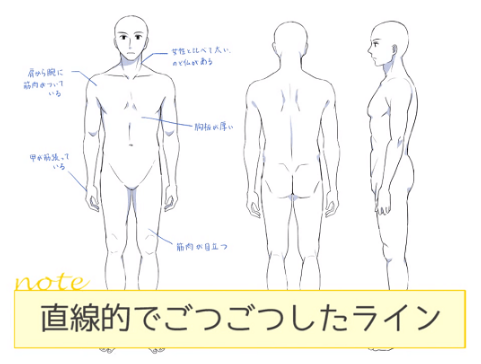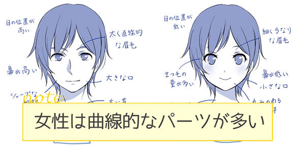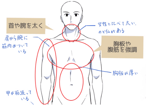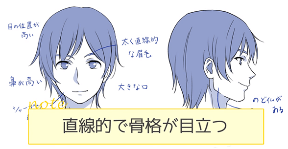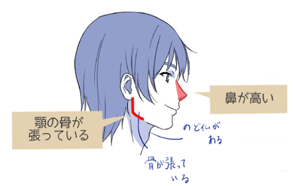 如果不理解男女的不同而画的话,虽然打算像这样画男性,但是会看起来像女性一样,有时会变得不知道是男性还是女性,所以要注意。