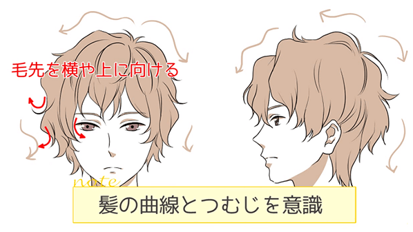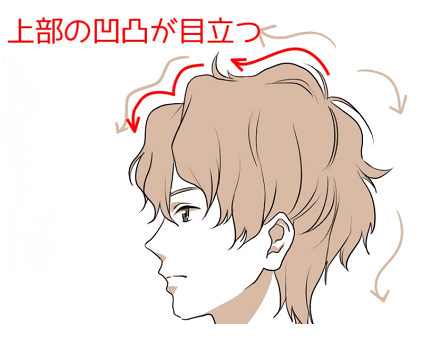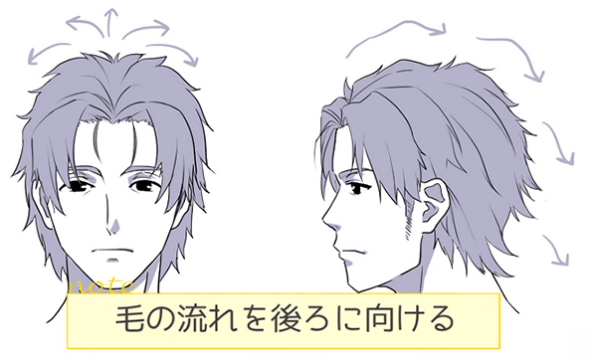 像头发流向向后一样画,可以给人留下与普通直发和烫发稍有不同的印象。