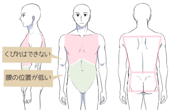 而且,男女骨骼最不同的地方是腰。男性腰部的位置比女性低,身体看起来更长。