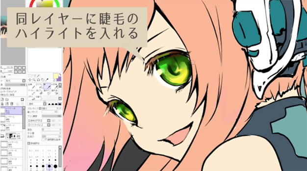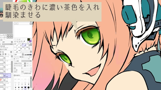 之后,逐渐使睫毛的时候、瞳孔的边缘等变暗,在眼睛的中央画眼睛。