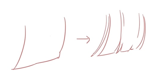 一开始就是把一张纸形象地表现出来,然后从上面画上头发。把侧面的头发当作一张纸来捕捉,可以很容易地画出来。