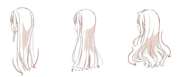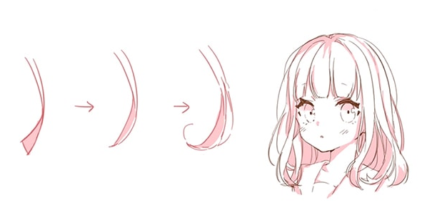 特别是表现出束感,或者越往下走越蓬松地画出来,能给可爱的女孩子留下深刻的印象。