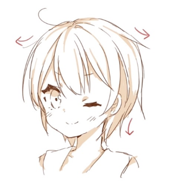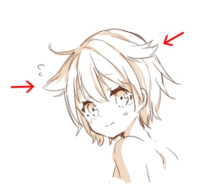 根据角色的不同,不是把发梢做成内卷,也可以往外溅,所以根据角色的不同分开画比较好。