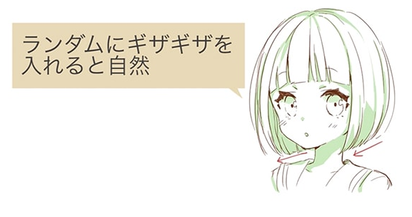 在刘海上稍微随机地放上锯齿状的话就会变成自然的头发。