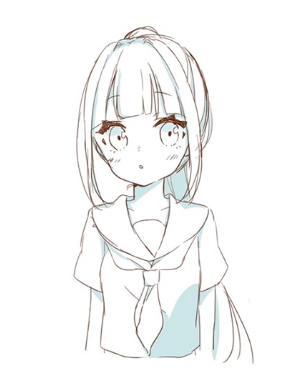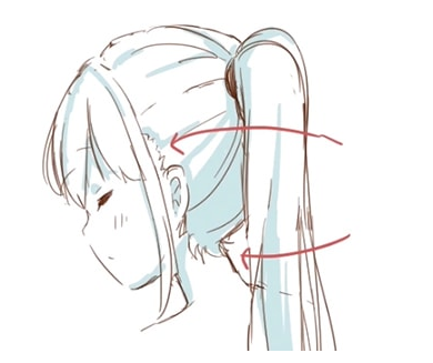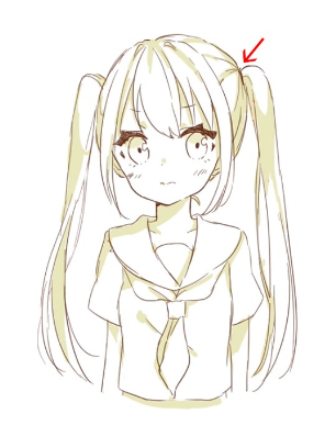马尾辫基本上是和双马尾一样的想法,但是结只有一个,所以要一边考虑头上的线条一边画出来吧。