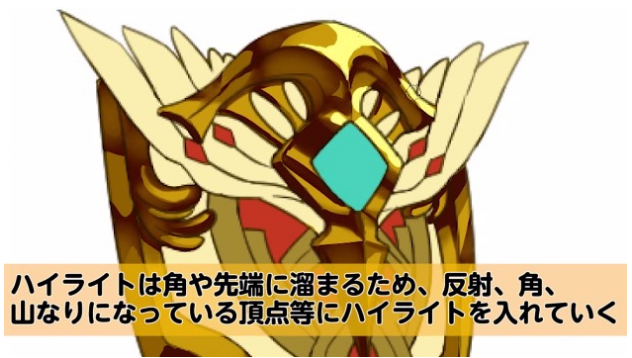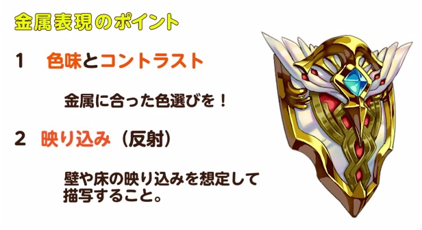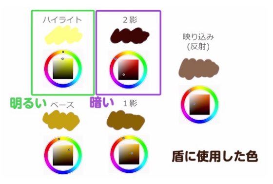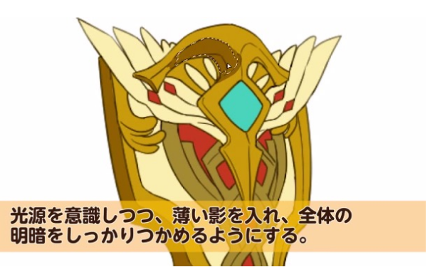 另外,在这次的插图中,为了将光源设定在右上方进行作业,在盾牌的右上方写上表示光的方向的箭头。