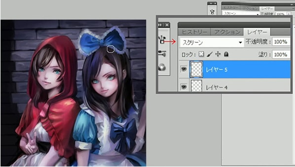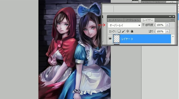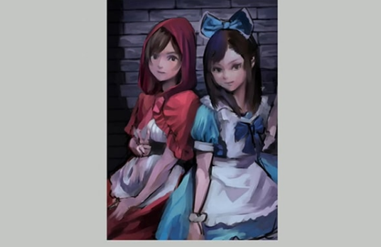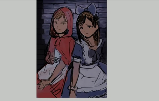 这一次,我想象了两个女孩,小红帽和爱丽丝。我想让红色和蓝色变得漂亮。