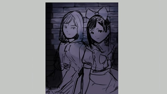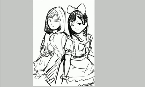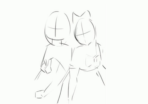 一旦确定了内容,下一步就是确定构图。我让他们看起来像是背靠背坐着。