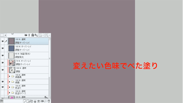 用想要改变新图层的颜色将整体涂满,叠加合成模式后即可完成。