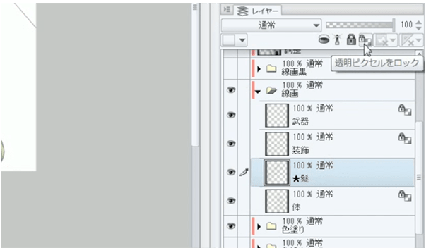 改变线条画的颜色。首先锁定线条图层的透明部分。