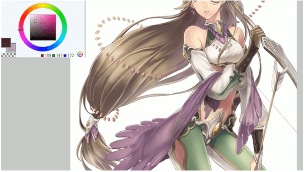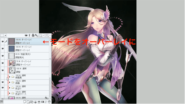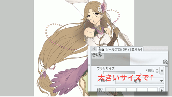 从涂上实心底色的状态开始。色调用头发的金、紫、绿三种颜色来总结。