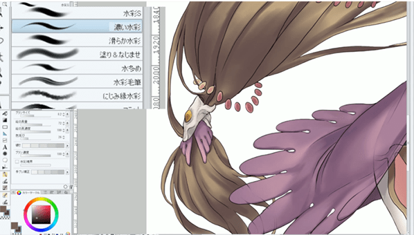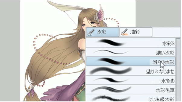 此次主要使用水彩S、浓郁水彩、光滑水彩三种刷子。