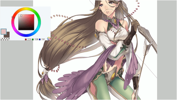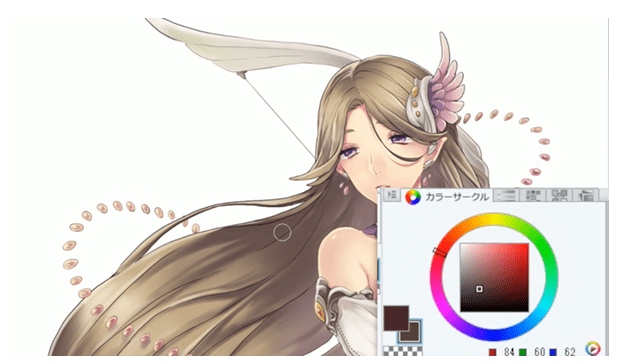 为了呈现立体感,要使辫子、头的中间、带有凹凸的部分的颜色变暗,提高前面出现的部分的浓度和饱和度。