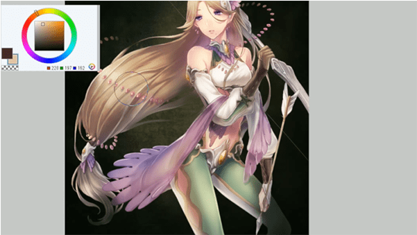 颜色是在吸管中提取附近的颜色,使用颜色的浓度和饱和度提高的颜色,用空气刷改变线条的颜色。