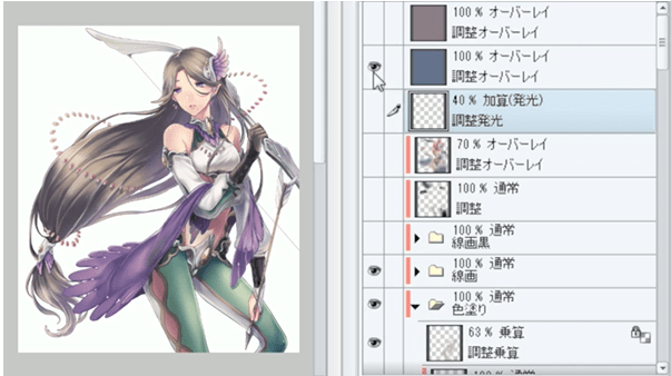 在发光层中,金属、宝石、头发等容易聚集光线的东西闪闪发光,强调质感。