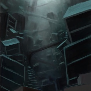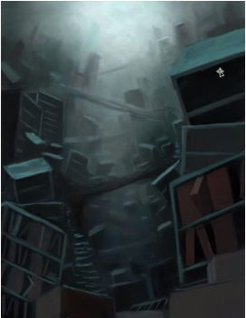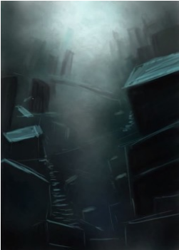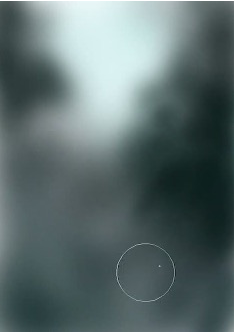 然后使用降低了不透明度的大刷子,用苍白的颜色从上往下画。