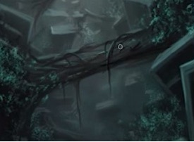 在树枝上画一把藤蔓,同时用滴管工具拾取附近的颜色,使其更具森林气息。