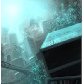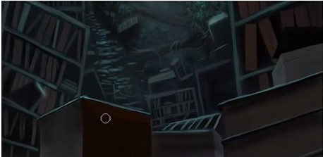 比如画红棕色的书时用清晰的颜色画出来的话,书的颜色就会从背景蓝色的黑色中看起来浮起来了。