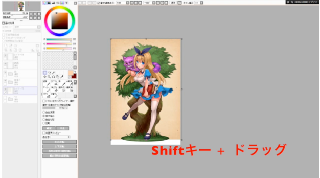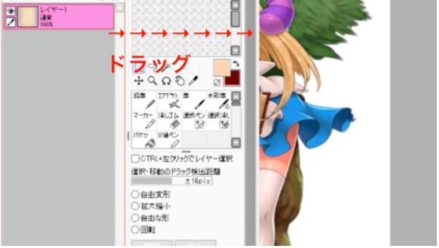 在角色插图可见的状态下选择背景窗口,然后将背景图层拖到角色插图窗口中进行合成。