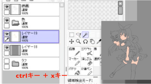 点击所有想着色的部分后,返回皮肤图层,按住键盘上的ctrl键,同时按x键,可以一次消除点击的部分以外的颜色。