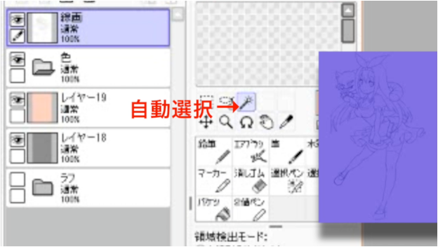 然后选择线条图层并单击自动选择工具图标。