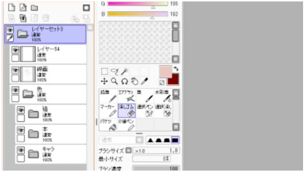 首先,将从线条画到涂色的所有图层合并为一个图层集。