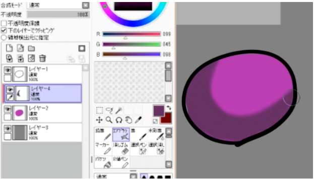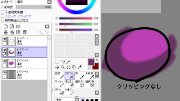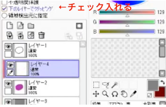 在选择在图层2上方新建的图层4的状态下,在“裁剪到下面的图层”中进行检查。