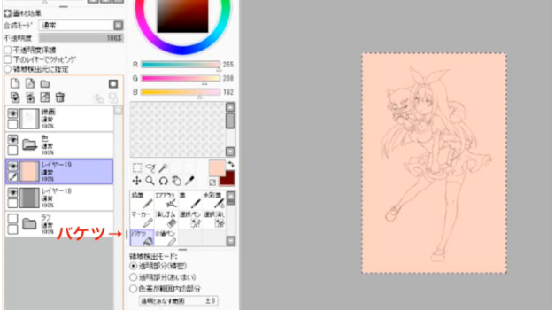 用桶工具用适当的颜色填充皮肤的图层。