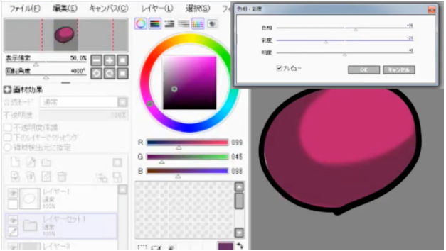 在某种程度上画出来后,调整色相和饱和度。